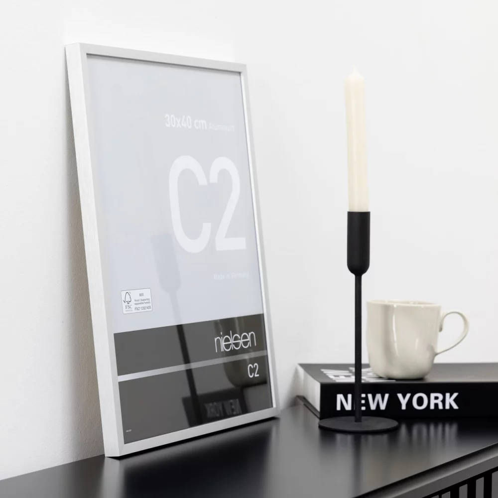 Der Aluminium-Bilderrahmen C2 konzentriert sich mit seinem klaren und kantigen Profil auf das Wesentliche. Die schlichte Formgebung liegt voll im Trend und passt zu Räumen mit moderner Einrichtung und vielen verschiedenen Bildern. Das ist Qualität und Schönheit von nielsen zu einem günstigen Preis.