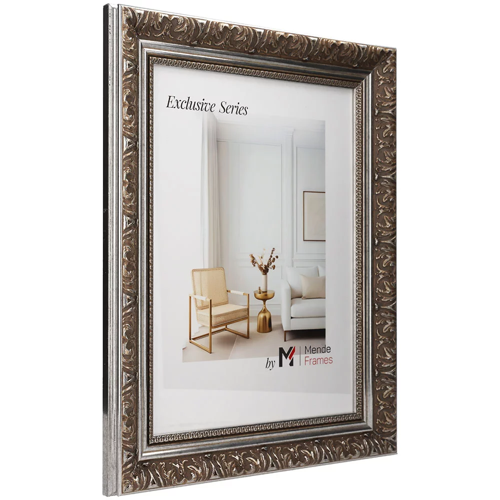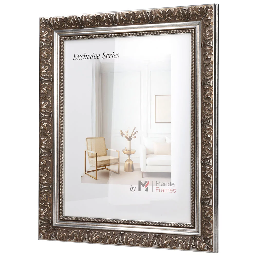 Die Rahmenprofile der Serie exclusiv zeichnen sich durch prachtvolle barocke und moderne Stilelemente aus und besitzen eine detailreiche Ornamentierungen. Die sorgfältige Oberflächenveredelungen machen diese Exklusiv Rahmen zu einem besonderen Blickfang an Ihrer Wand. Kunden, die ein Auge für schöne Details haben, werden sich in diese luxuriösen Massivholzrahmen verlieben.