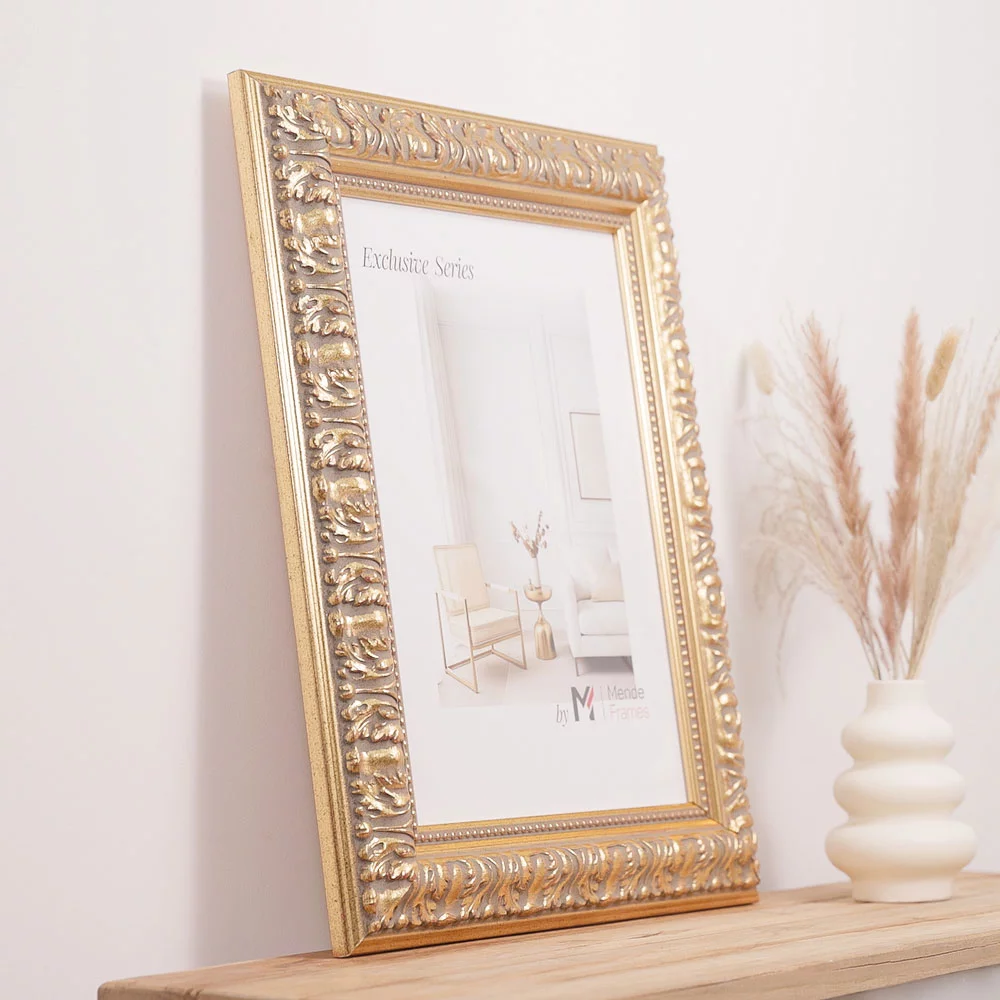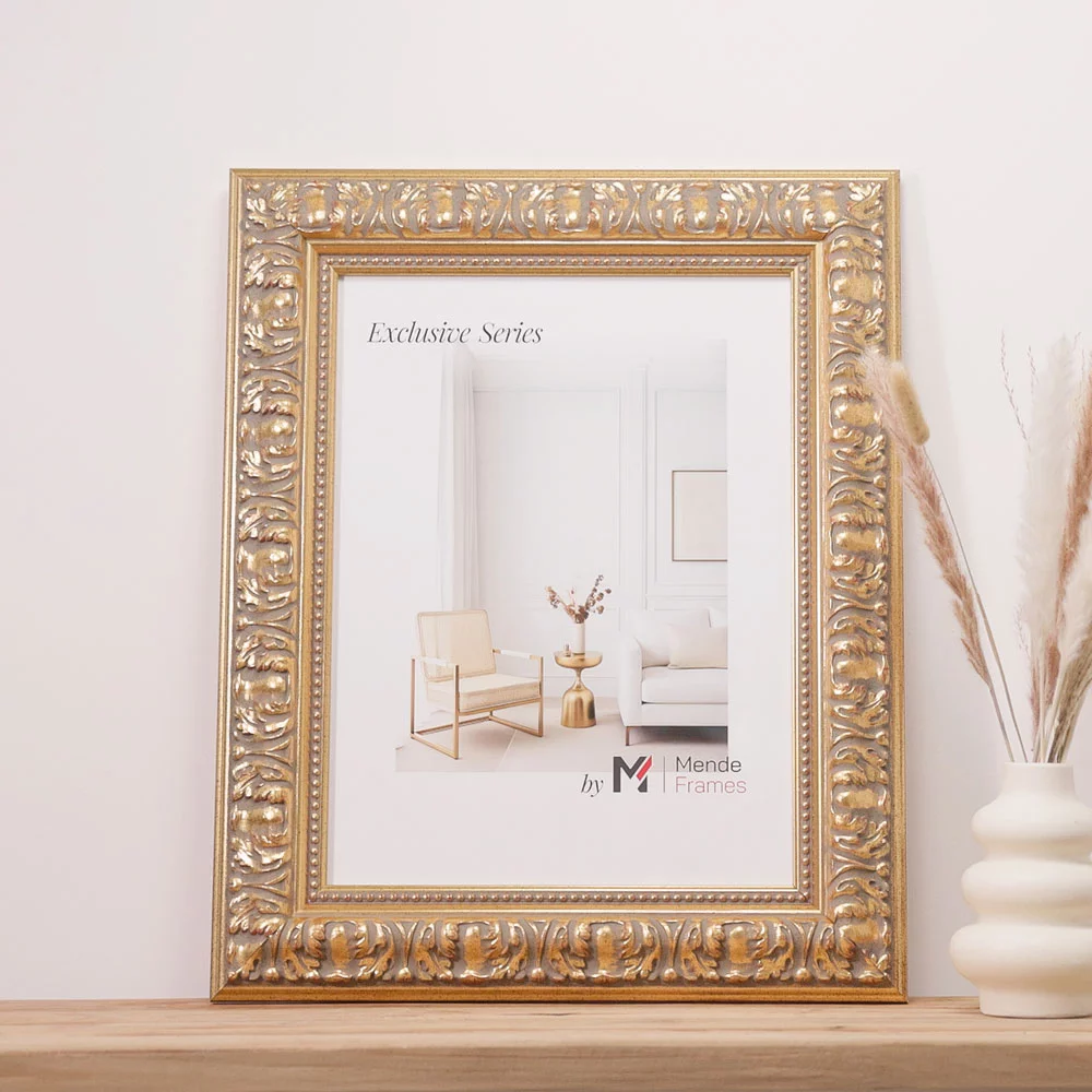 Die Rahmenprofile der Serie exclusiv zeichnen sich durch prachtvolle barocke und moderne Stilelemente aus und besitzen eine detailreiche Ornamentierungen. Die sorgfältige Oberflächenveredelungen machen diese Exklusiv Rahmen zu einem besonderen Blickfang an Ihrer Wand. Kunden, die ein Auge für schöne Details haben, werden sich in diese luxuriösen Massivholzrahmen verlieben.