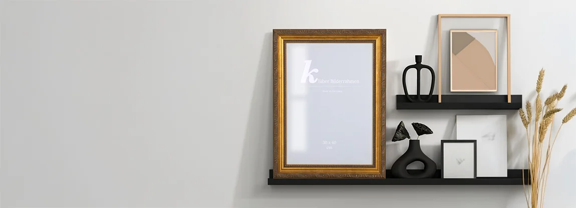 Mit der Dekoration der eigenen Wohnung gestalten wir irgendwie das eigene Leben, weil unser Wohlbefinden dadurch beeinflusst wird. Man möchte die perfekten Möbel und die perfekte Wandfarbe mit den eigenen Bedürfnissen abstimmen. Und was ist mit der Kunst? Wenn man die Entscheidung getroffen hat, ein Bild in einem barocken Bilderrahmen an die Wand zu hängen, möchte man nichts dem Zufall überlassen. Ein Gemälde mit einem barocken oder antiken Bilderrahmen eignet sich gut für eine farbenfrohe Wohnzimmereinrichtung, mit Teppichen und Gardinen mit pflanzlichen Motiven. Die Holzart des Bilderrahmens kann mit der Holzfarbe der Möbel und des Parketts abgestimmt werden. Wenn du einen vergoldeten Rahmen im Wohnzimmer anbringen möchtest, achte auf die Lichtverhältnisse, so dass der Rahmen das Tageslicht seitlich empfängt, um die Plastizität der Ornamente sichtbar zu machen. Ein Gemälde mit einem barocken Bilderrahmen braucht etwas mehr Raum und Luft, um seine Schönheit als Werk zu entfalten. Wandfarbe in Pastelltönen sorgt für Gemütlichkeit und bleibt farbig zurückhaltend im Hintergrund. Der Bilderrahmen wird als Akzent der Zimmereinrichtung dienen. Wenn du dunklere Wände schön findest, wirst du staunen wie ansehnlich das wirkt, wenn ein Bild mit vergoldetem Bilderrahmen sich von der dunkleren Wand abhebt. Mit helleren schlichten Möbeln und Couch-Kissen mit botanischen Motiven bringst du viel Eleganz in deinen Alltag. Zusätzliche Dekoration mit Kerzenleuchtern und Vasen in barockem Stil werden mit dem Bild an der Wand wunderbar korrespondieren. Auch mit mehreren kleineren Bildern und Fotografien in Barockrahmen lässt sich eine wunderschöne Bilderwand gestalten.