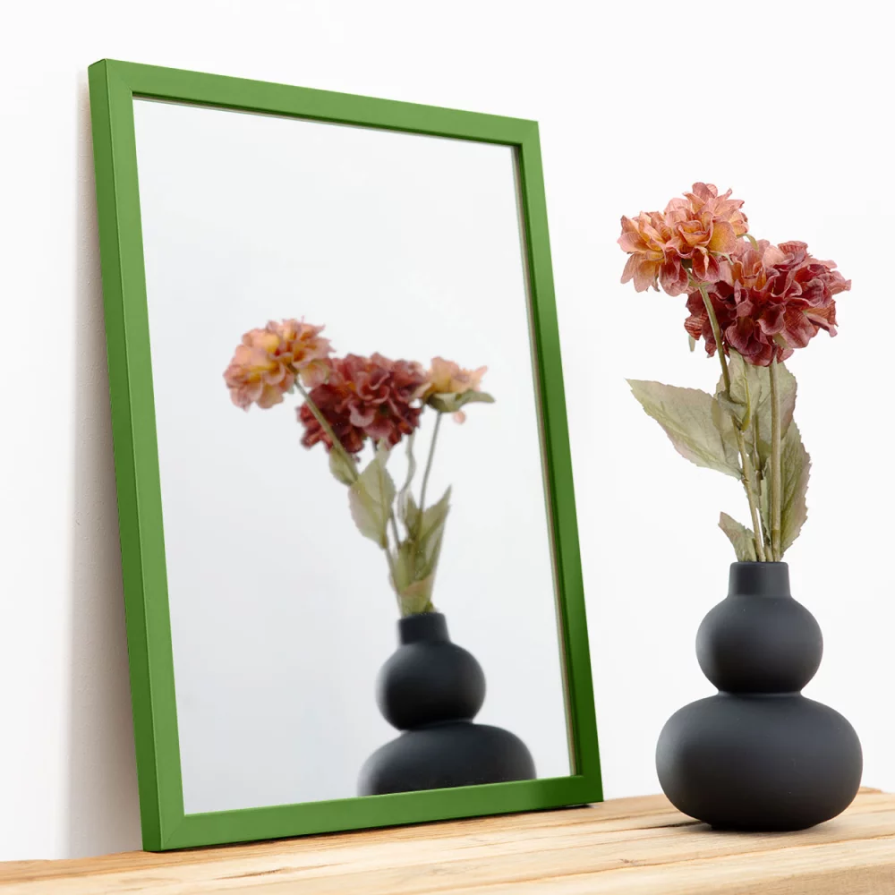 Hier wird statt des Bildglases ein Spiegel ohne Facettenschliff eingesetzt. Manche Hersteller bieten in einigen Standardformaten einen Facettenspiegel an, bei Interesse kontaktieren Sie uns bitte.