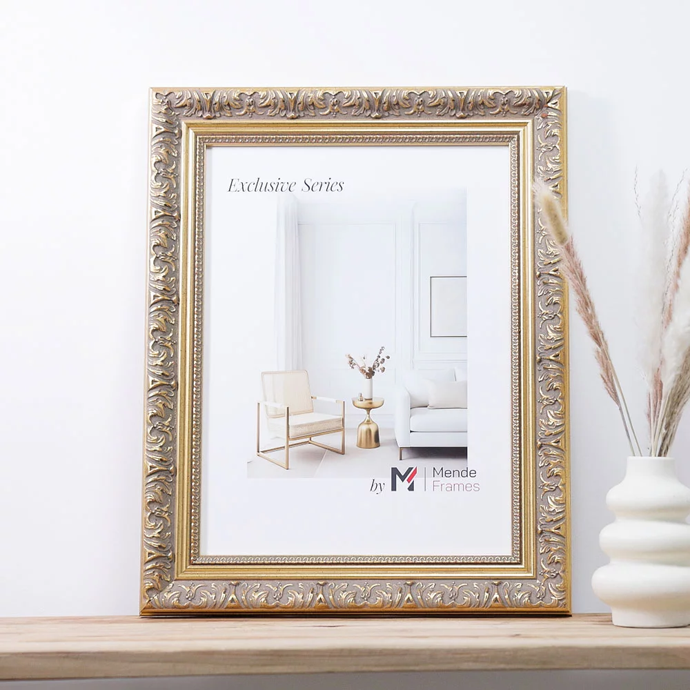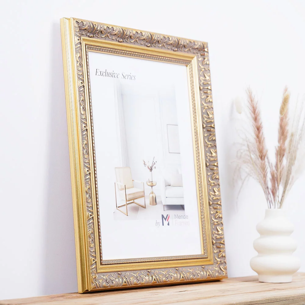 Die Rahmenprofile der Serie exclusiv zeichnen sich durch prachtvolle barocke und moderne Stilelemente aus und besitzen eine detailreiche Ornamentierungen. Die sorgfältige Oberflächenveredelungen machen diese Exklusiv Rahmen zu einem besonderen Blickfang an Ihrer Wand. Kunden, die ein Auge für schöne Details haben, werden sich in diese luxuriösen Massivholzrahmen verlieben.