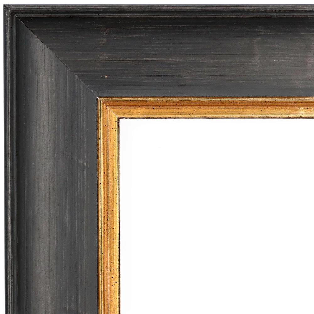 Anthrazit-Schwarz mit Gold, handgrundiert | Museumsglas UV 92 entspiegelt
